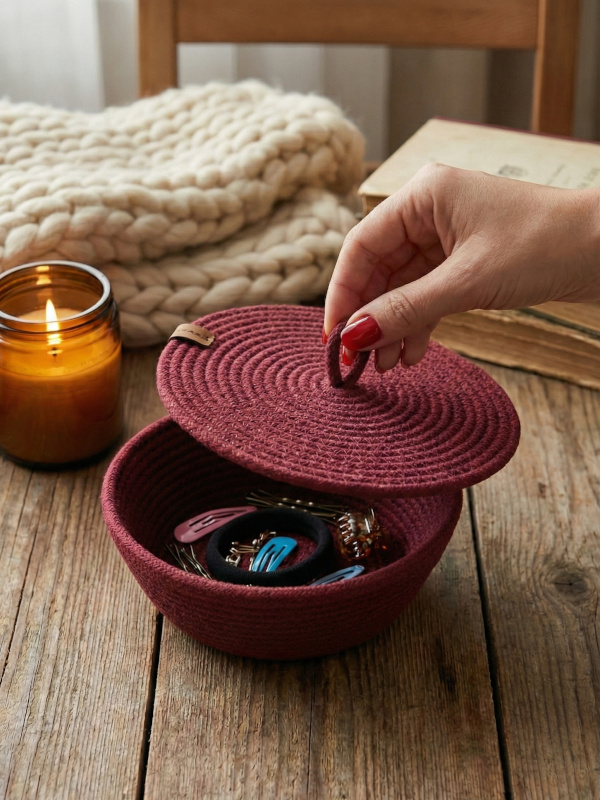 W każdym domu istnieją przedmioty, które wiecznie szukają swojego miejsca. Drobna biżuteria, ulubione gumki do włosów czy osobiste drobiazgi zasługują na oprawę, która podkreśli ich wartość, zamiast chować je w plastikowych pudełkach. Rozwiązaniem jest niewielki, bordowy koszyk ze sznurka, który łączy w sobie funkcję organizera z estetyką wysokiej próby.