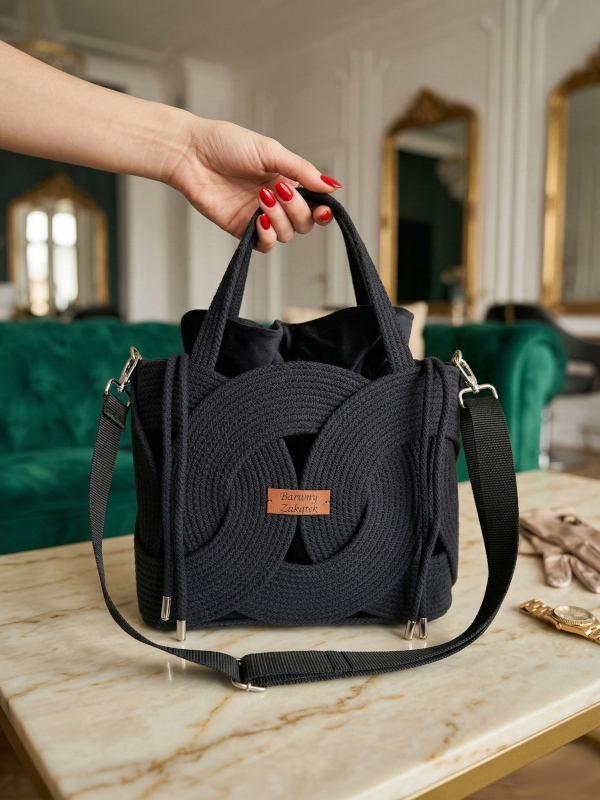 Czarna torebka ze sznurka – elegancja, która nie potrzebuje krzyczeć
