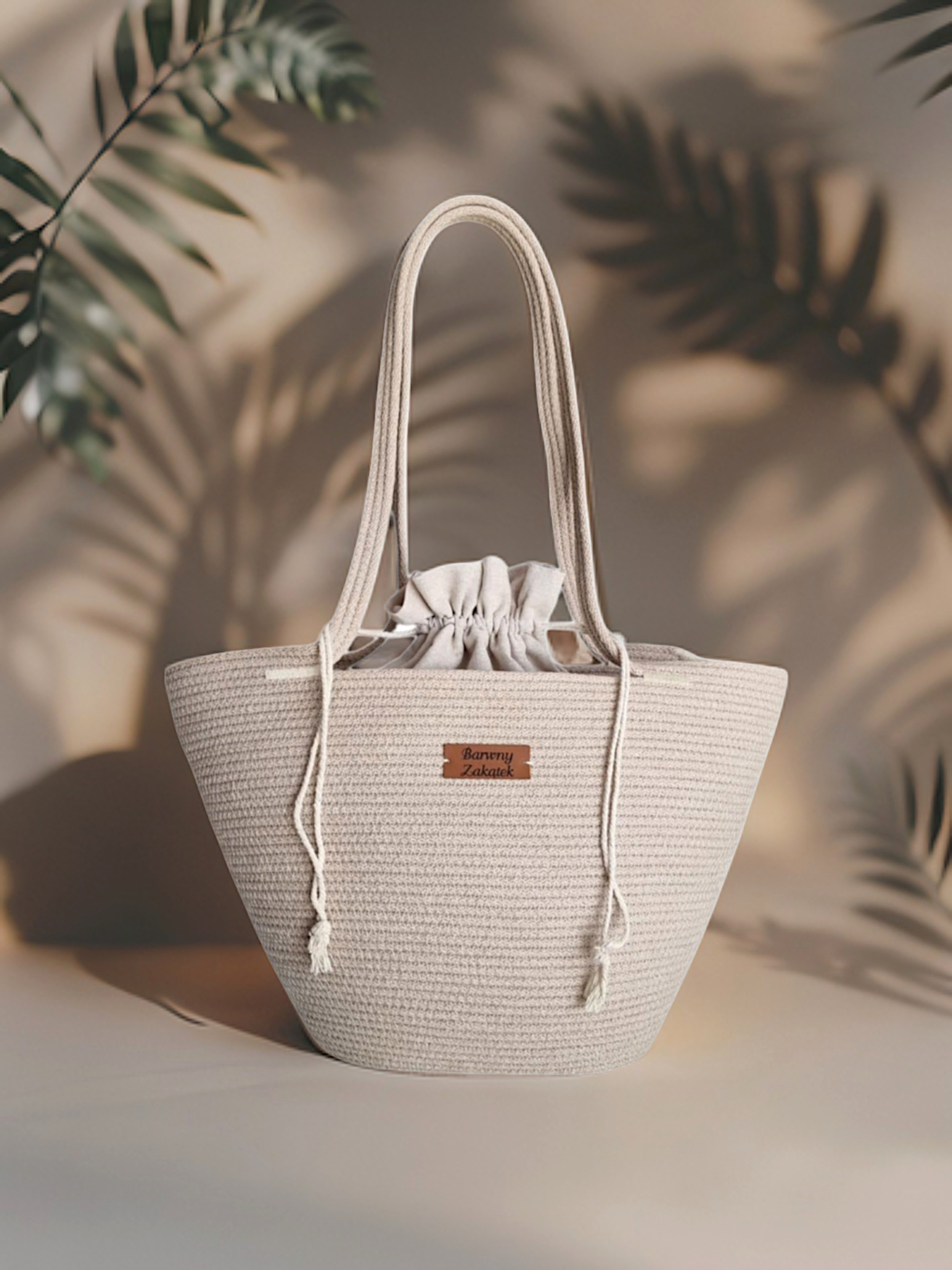 Koszyk miejski ze sznurka beż + worek wyjmowany, na zamówienie.