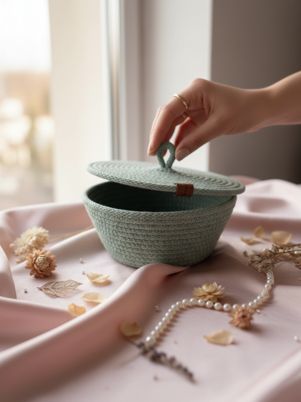 Koszyk z pokrywką i podstawka na biżuterię – zestaw, który ma sens