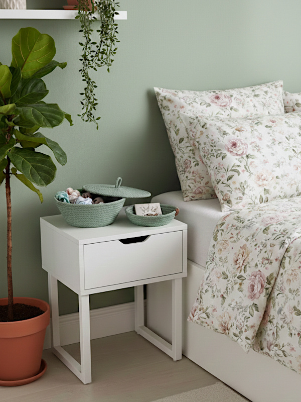 Odcień szałwia jest naturalny, subtelny i ponadczasowy. Doskonale komponuje się z jasnymi wnętrzami, drewnem, beżami i bielą, dlatego zestaw pasuje do stylu boho, skandynawskiego i nowoczesnego.