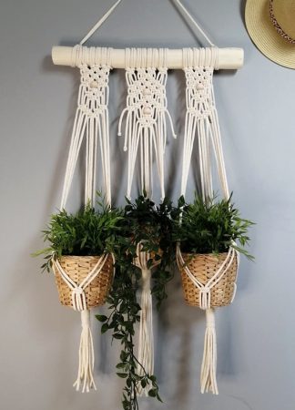 Kwietnik makrama na ścianę na 3 doniczki mkw089